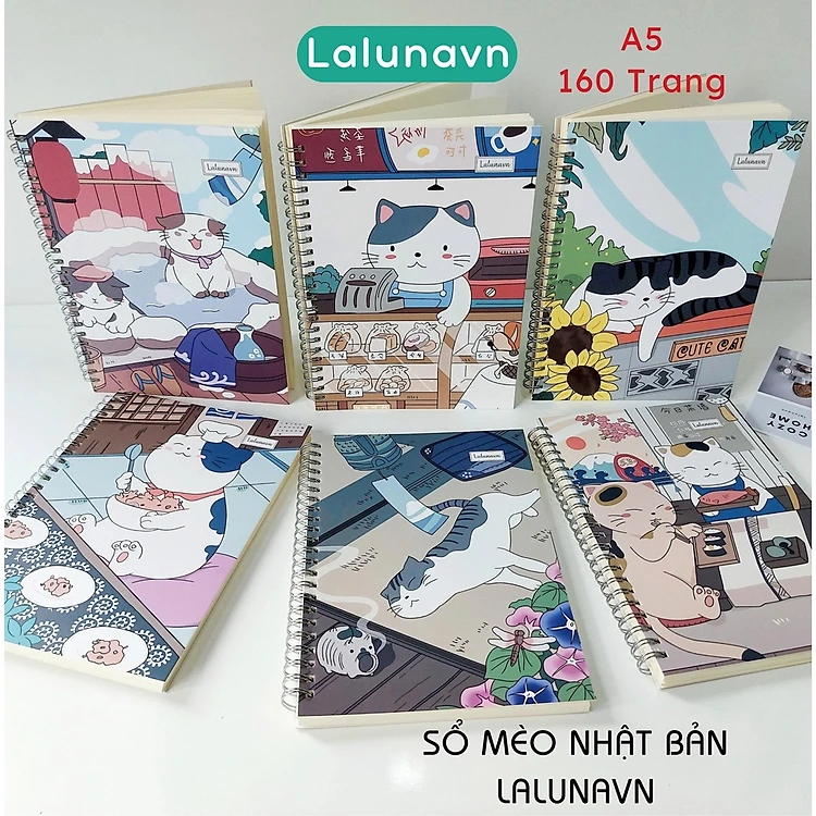 Sổ tay lò xo mèo A5 160 trang Bộ sưu tập sổ ghi chép mẫu mèo Nhật Bản anime học sinh-B113