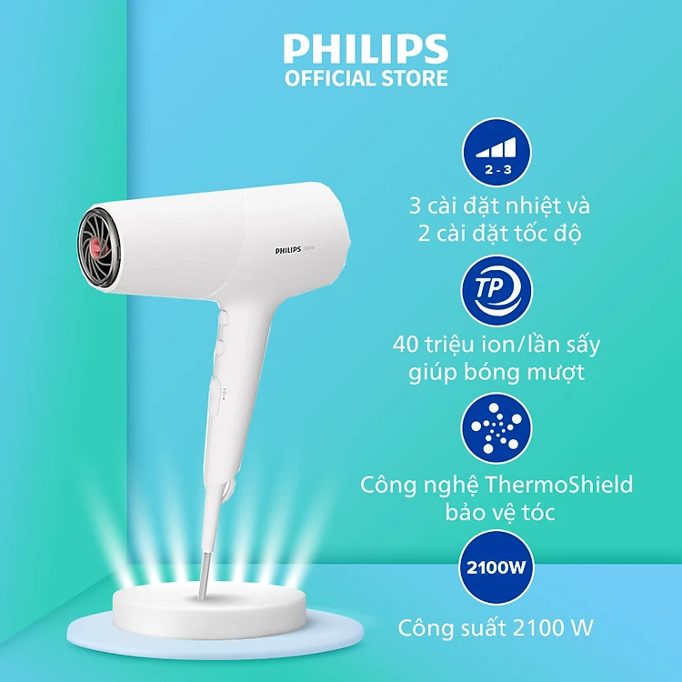 Máy sấy tóc Philips BHD500/00 - Sấy tóc nhanh khô - Bảo vệ tóc không bị quá nóng - Hàng Chính Hãng