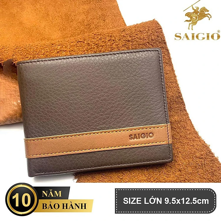 Bóp Nam Da Bò Mềm Mại STRIPE, Size Lớn, 10 Ngăn Để Thẻ, 3 Ngăn Đựng Tiền, Dáng Ngang - Gập 2, Có Khóa Kéo, Để Vừa Các Giấy Tờ Chuyên Dụng Như Giấy Tờ Xe Máy, Bảo Hiểm
