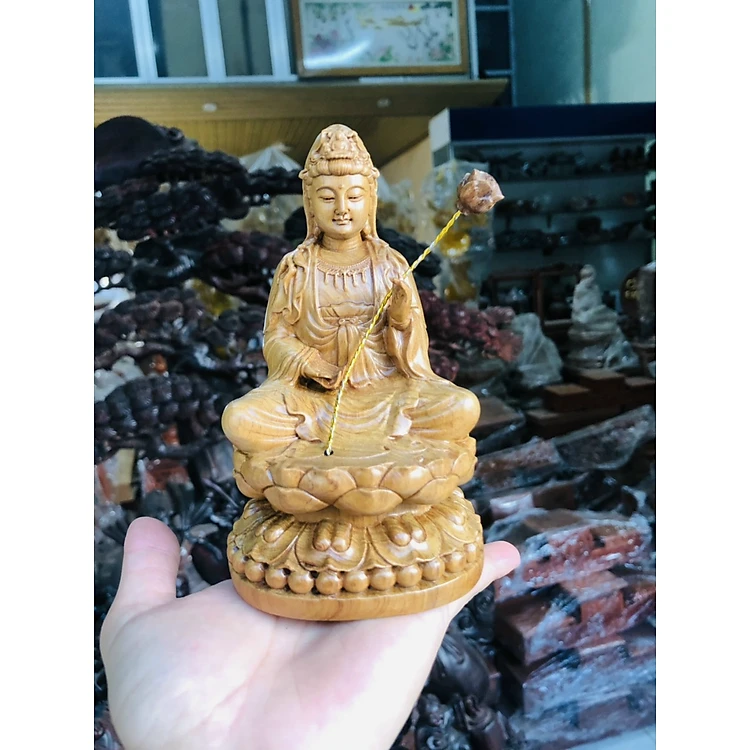 Tượng phật mini đại thế chí bồ tát bằng gỗ bách xanh thơm nức kt cao 15×9×9cm
