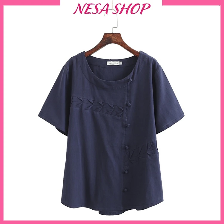 Áo nữ kiểu cổ tròn tay ngắn form rộng thoải mái, chất liệu Đũi cao cấp mềm mịn mát thấm mồ hôi NeSa Shop AKH.58