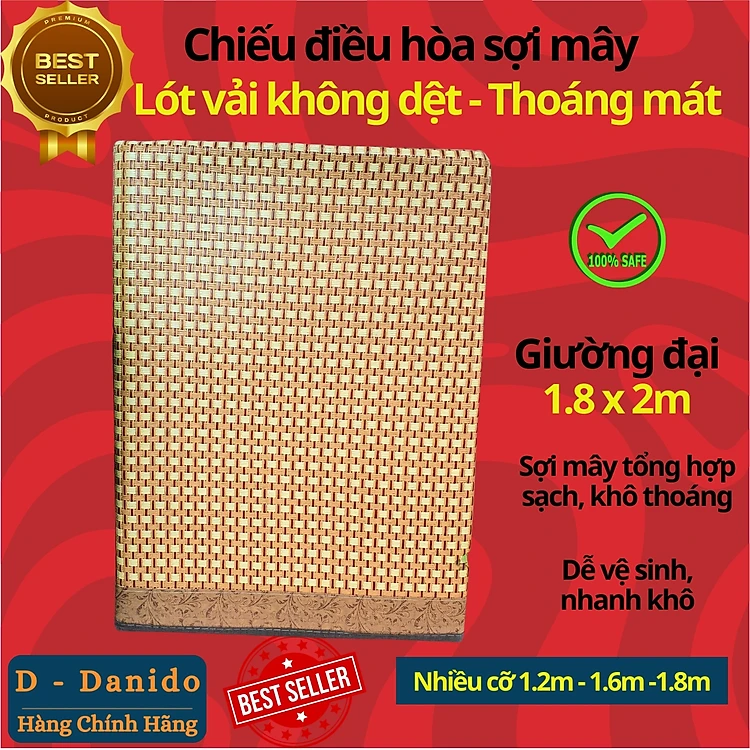 Chiếu điều hòa sợi mây tre đan tổng hợp lót vải không dệt cao cấp hàng xuất khẩu 2 mặt giá rẻ 1m2 1m6 1m8 D Danido