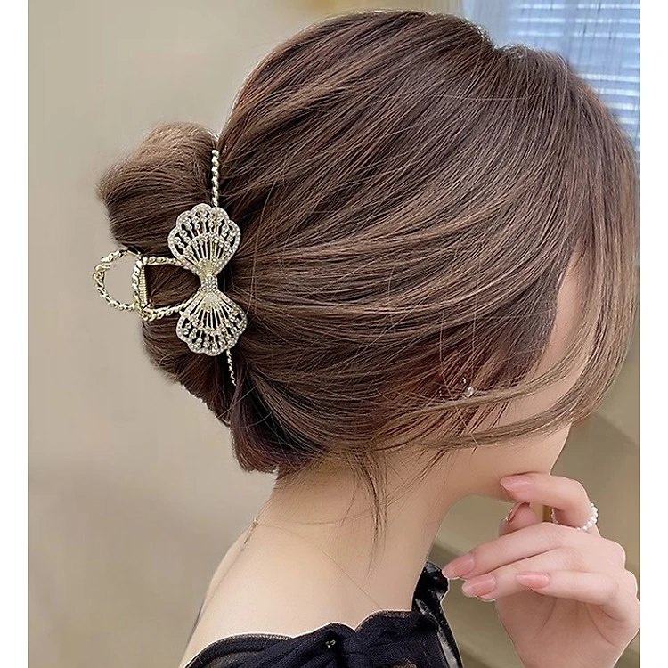 Kẹp tóc kim loại dạng dài nơ đính đá sang trọng ( mẫu mới )
