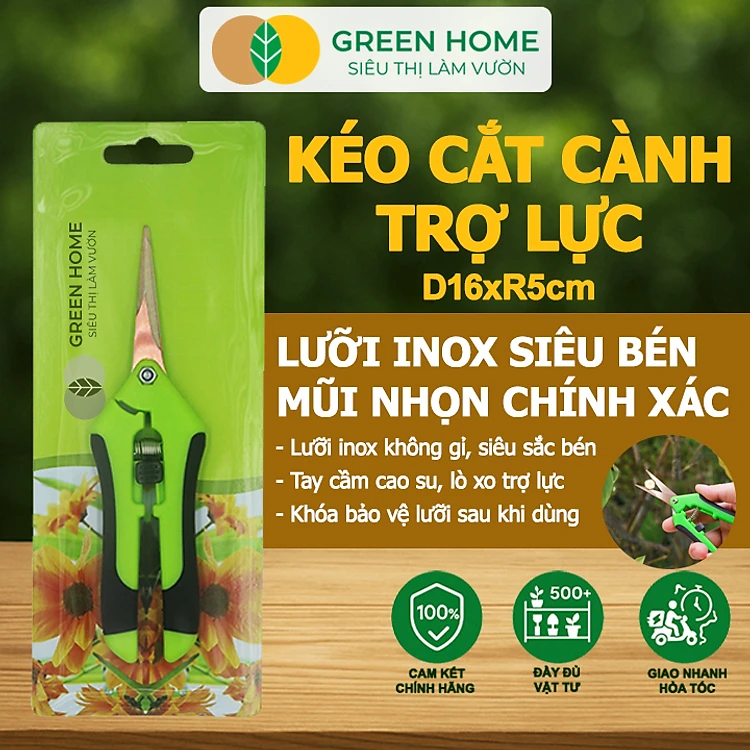 Kéo Cắt Cành GreenHome, D16,5xR4,5cm, Inox, Mũi Nhọn, Siêu Bén, Không Gỉ, Có Khoá An Toàn, Nhiều Màu Lựa Chọn