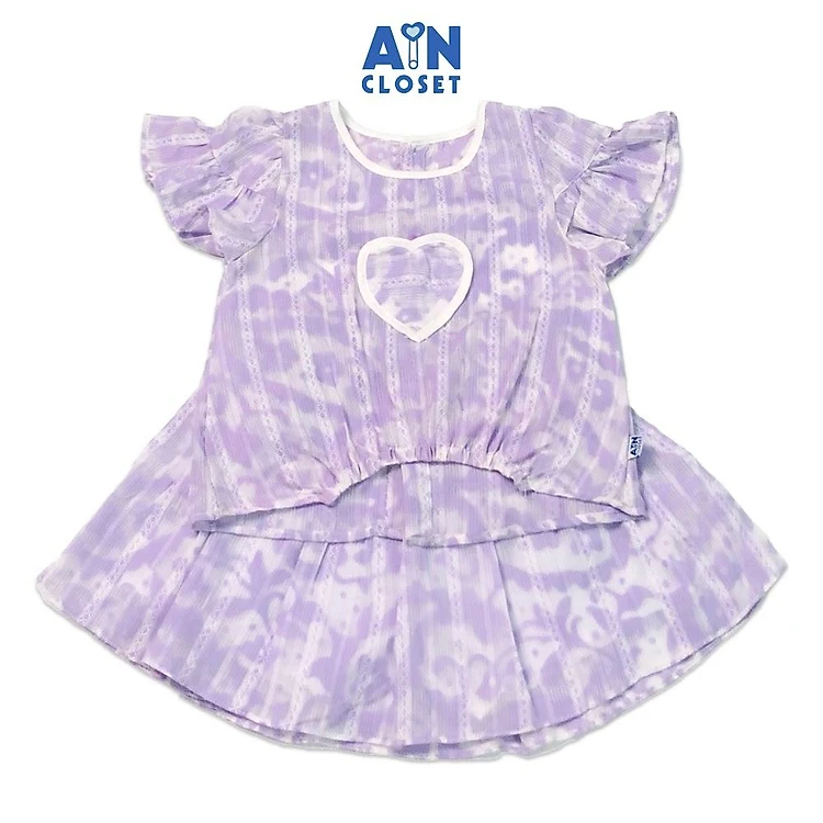 Bộ áo váy ngắn bé gái họa tiết Tím loang cotton boi dệt - AICDBTAUBAV7 - AIN Closet