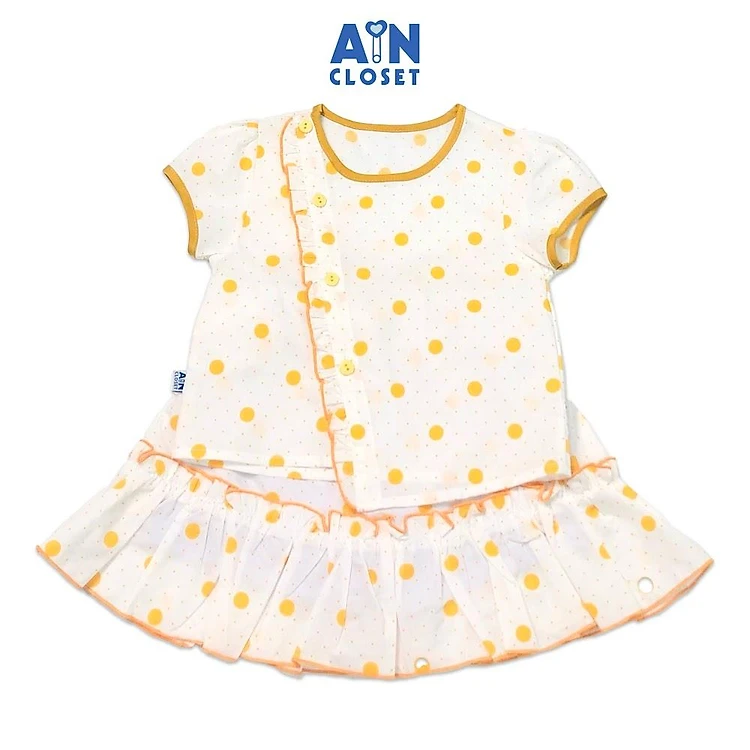 Bộ áo váy ngắn bé gái họa tiết Bi vàng chéo cotton - AICDBGY0FOJQ - AIN Closet