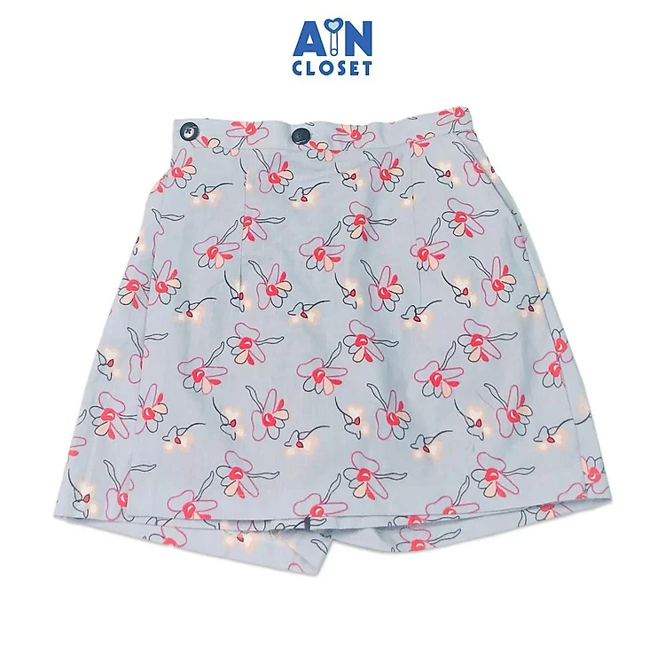 Quần váy ngắn cho mẹ Hoa bướm xanh linen - AICDMESXXO7I - AIN Closet