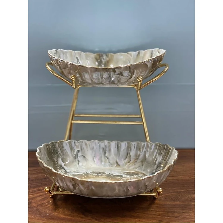Khay đựng bánh kẹo hoa quả bằng sứ xương cao cấp vân đá sang trọng
