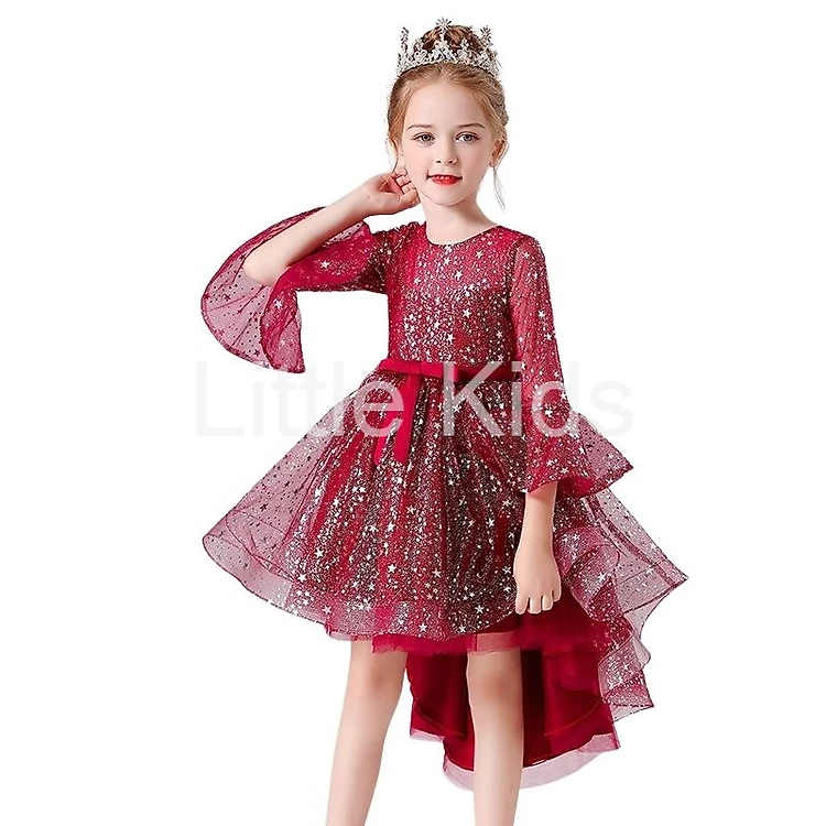 [Có sẵn] Váy đầm bé gái dễ thương, váy đuôi dài dự tiệc cho bé từ 6-12 tuổi màu đỏ