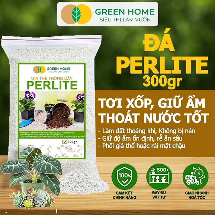 Đá Perlite Greenhome, Bao 300gr, Trồng Hồng, Thuỷ Canh, Giá Thể Trân Châu Giàu Khoáng Chất, Tăng Độ Tơi Xốp