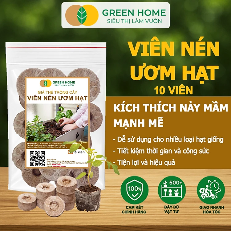 Viên Nén Xơ Dừa Greenhome, Ươm Hạt Giống, Ươm Cây Con Tiện Lợi, Đầy Đủ Dinh Dưỡng, Cây Phát Triển Nhanh