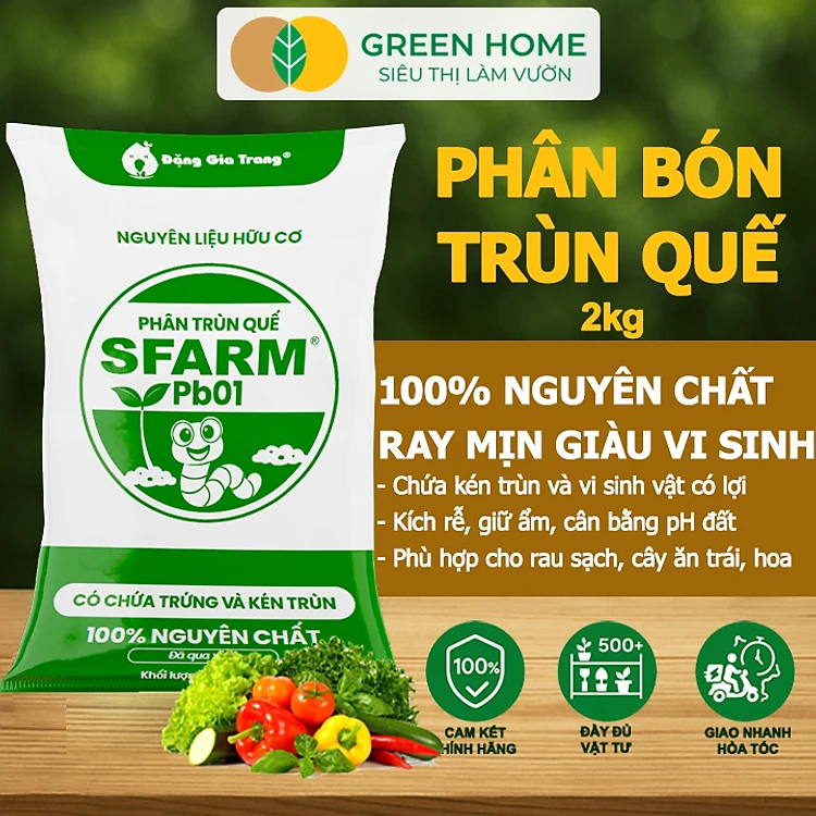 Phân Trùn Quế Greenhome, Bao 2kg, Dinh Dưỡng Hữu Cơ, Không Mùi, Tốt Cho Lan, Bonsai, Rau, Cây Ăn Trái