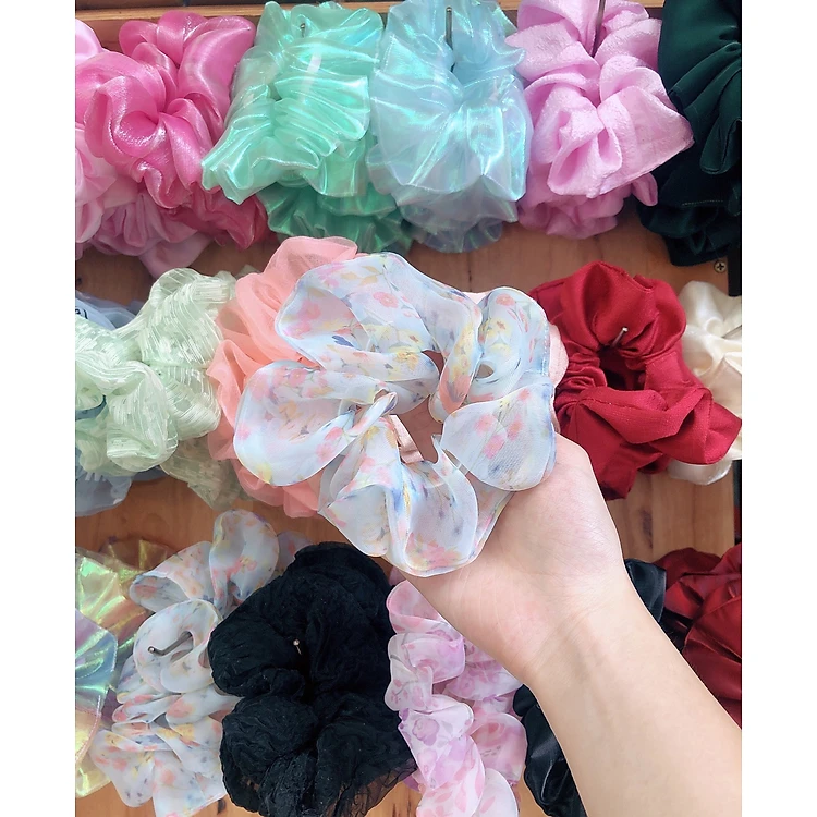 Cột tóc scrunchies hoa voan đẹp mẫu mới size trung