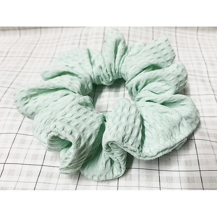 Cột tóc scrunchies vải dày màu xanh ô kẻ