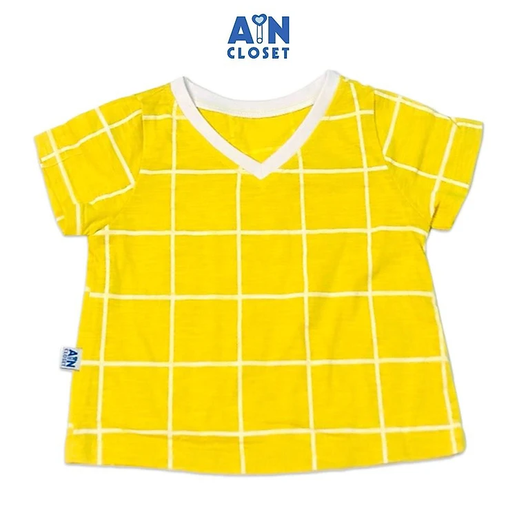 Áo ngắn tay unisex họa tiết Caro vàng thun cotton - AICDBTC6NAJG - AIN Closet
