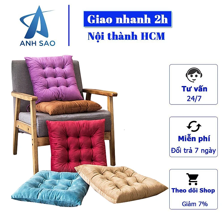 Đệm ngồi bệt vuông, đệm lót ghế văn phòng vải nhung cao cấp A - 40x40x6cm giao màu ngẫu nhiên