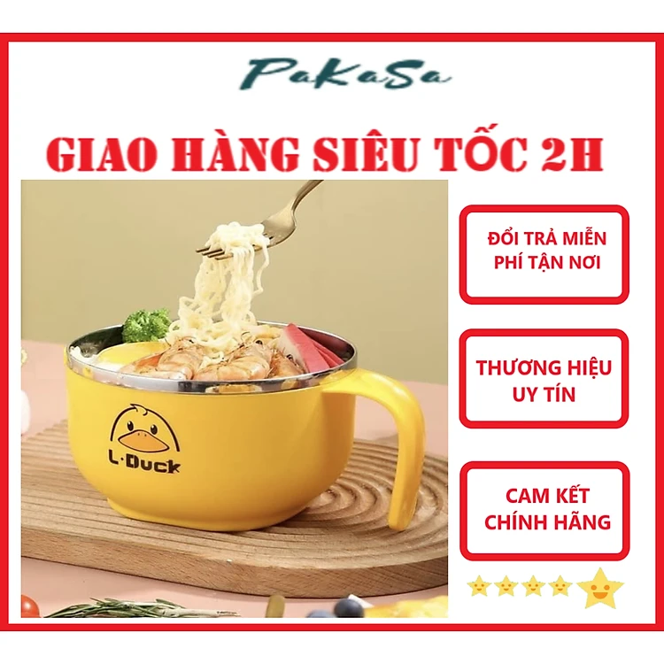 Ca Ăn Mì , Ca Đựng Cháo Giữ Nhiệt, Tô khuấy Bột Ăn Dặm Cho Bé Hình Vịt Vàng Đáng Yêu - Chính Hãng