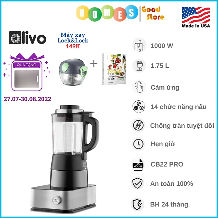 - Với những công nghệ độc quyền của Olivo với sản phẩm máy xay nấu đa năng CB22 PRO được trang bị động cơ thông minh, cấu tạo từ những vật liệu cao cấp giúp máy hoạt động êm ái và không tạo tiếng ồn lớn như các dòng máy khác.