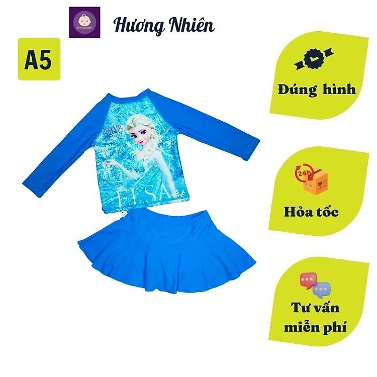Đồ bơi bé gái tay dài hình Elsa - Pony từ 10-39kg - quần giả váy tạo kín đáo