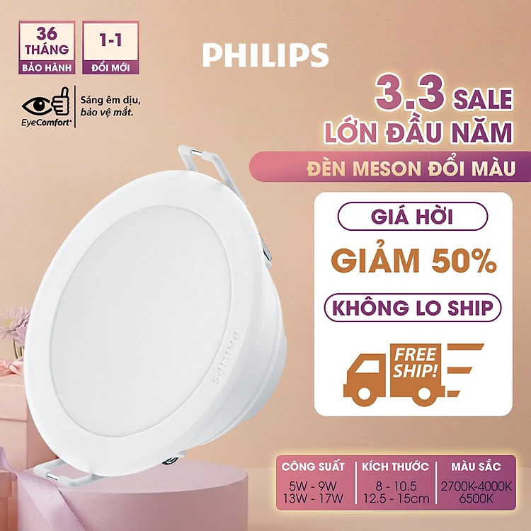 Bộ đèn PHILIPS Âm Trần MESON đổi màu ánh sáng (vàng, trung tính, trắng)