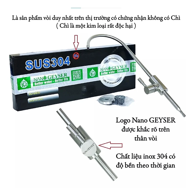 Vòi máy lọc nước Inox 304, Không Chì an toàn cho sức khoẻ - Hàng Chính Hãng