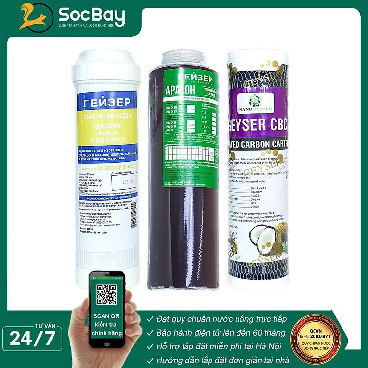 Combo 3 lõi lọc nước 123 dùng cho máy Ecotar 3, Ecotar 6, Lõi Ecotar, Aragon, CBC - Hàng Chính Hãng