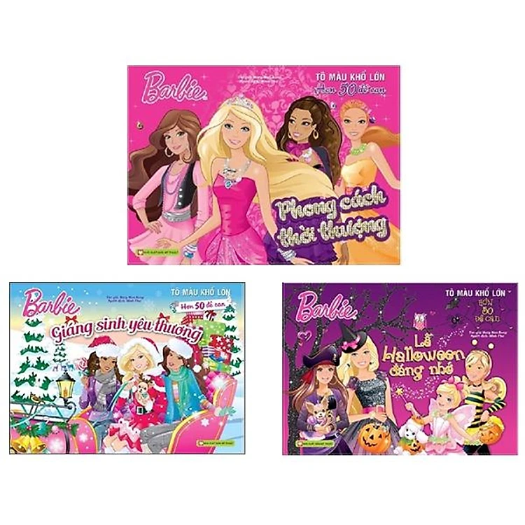 Bộ Sách Tô Màu Khổ Lớn Berbie - 50 Đề Can Bóc Dán Đề Can (Bộ 3 Cuốn)