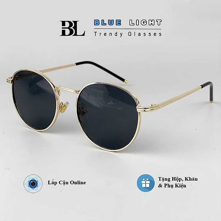 Kính Râm, Kính Mát Nam Nữ Mắt Tròn Viền Dày Mắt Đen, Nâu Gọng Bạc Vàng Hàn Quốc - BLUE LIGHT