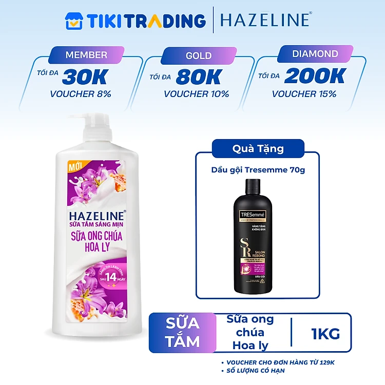 Sữa tắm dưỡng thể thiên nhiên trắng sáng da Hazeline 1KG - Sữa ong chúa hoa ly