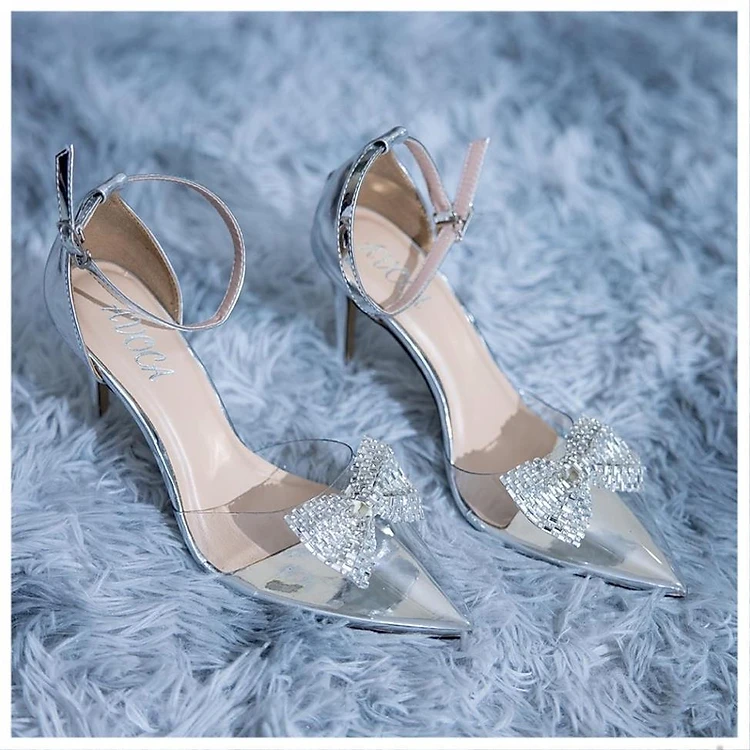 Giày mũi nhọn nơ bạc cô dâu gót 9cm cực đáng yêu cho các nàng ( giao hỏa tốc - free shipping - bảo hành 1 năm)