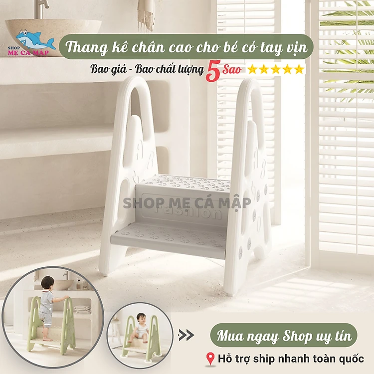 Thang mini ghế đôn 2 bậc cho bé có tai vin, Nhựa cao cấp tải trọng lên tới 75kg