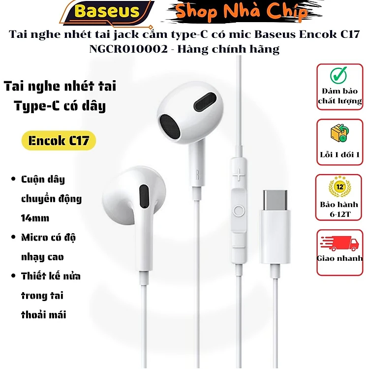 Tai nghe nhét tai jack cắm type-C có mic Baseus Encok C17 NGCR010002 - Hàng chính hãng