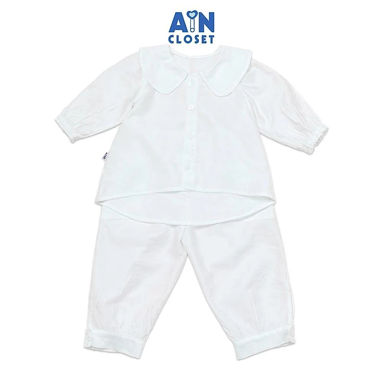 Bộ quần áo dài bé gái Trắng trơn cổ sen boi tơ - AICDBGUTUXEJ - AIN Closet