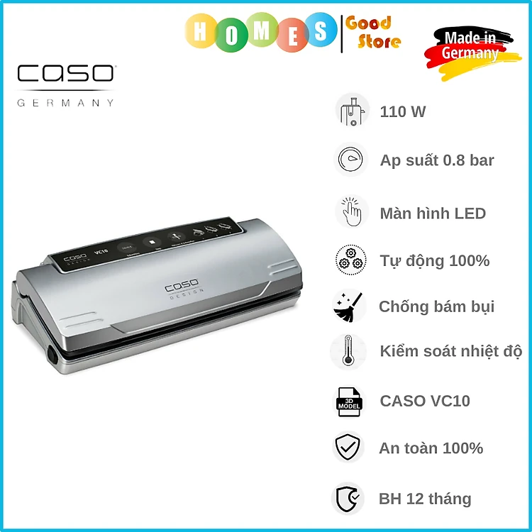 Máy Hút Chân Không CASO VC10 Cao Cấp, Thiết Kế Sang Trọng, Lực Hút 0.8 Bar, Công Suất 110W - Hàng Chính Hãng