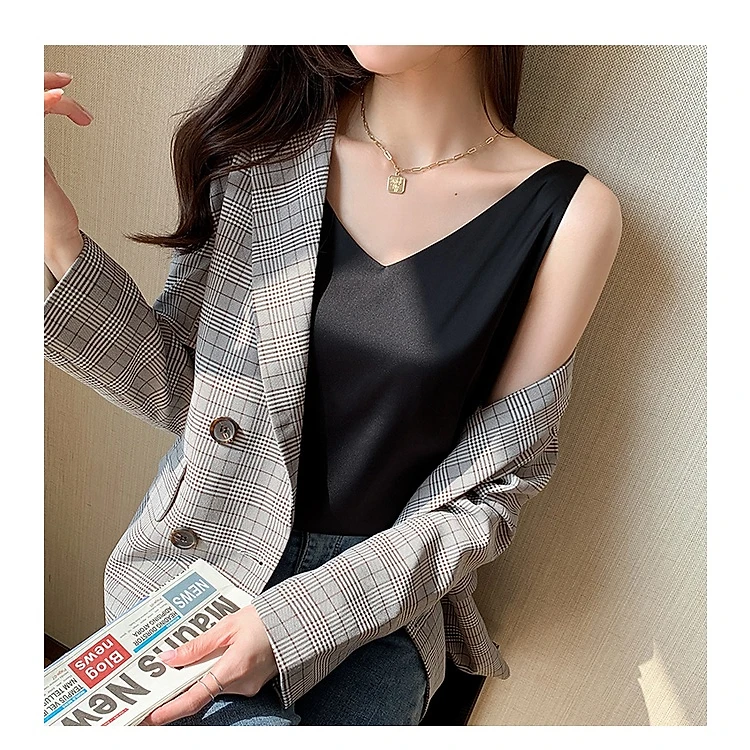 Áo Hai Dây Cổ Tim Mặc Trong Vest blazer kiểu nữ freesize (40-65kg) Vải Lụa Satin Mịn ,Thoáng Mát New Design AO0003