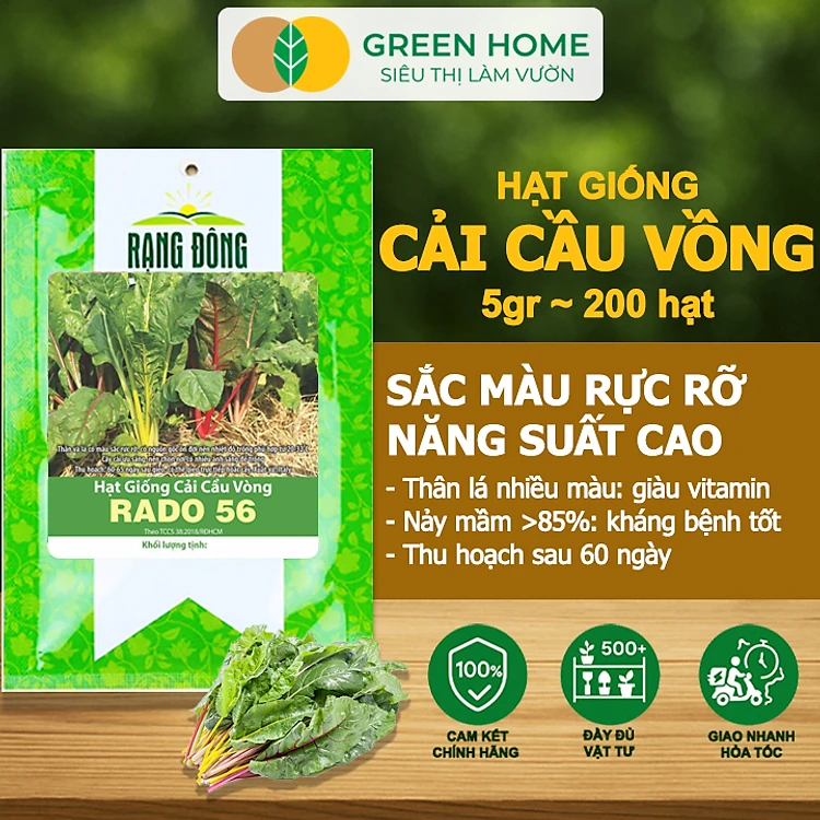 Hạt Giống Rau Cải Cầu Vồng Greenhome, Gói 5g~200 hạt, Dễ Trồng Quanh Năm, Nảy Mầm Cao, Thu Hoạch Nhanh, Năng Suất Cao R06