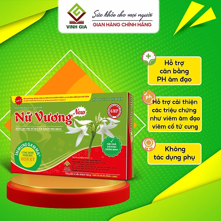 Nữ Vương New Vinh Gia Hỗ Trợ Cân Bằng PH Vùng Nhạy Cảm, Giảm Khí Hư, Ngứa Vùng Nhạy Cảm, Phòng Ngừa Các Bệnh Phụ Khoa Hộp 30 Viên