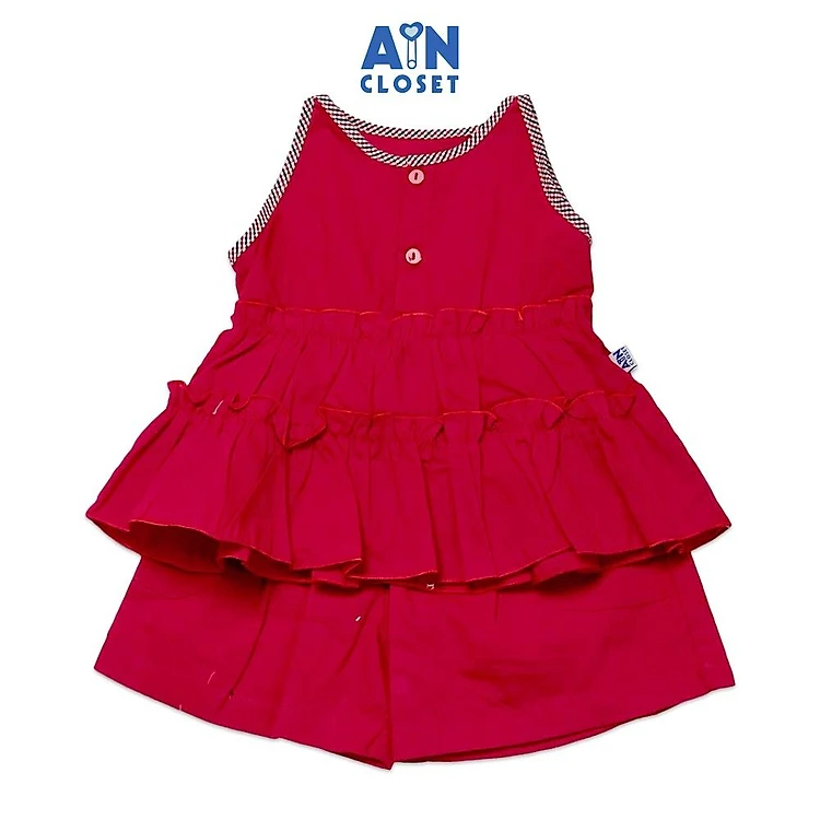 Bộ quần áo ngắn họa tiết Nhún đỏ viền caro cotton - AICDBGRHCO0R - AIN Closet