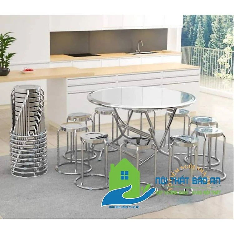 Bộ bàn tròn inox nhà hàng 10 ghế - NỘI THẤT BẢO AN
