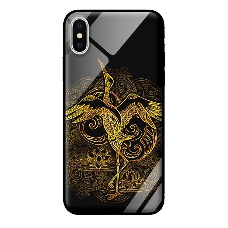 Ốp lưng kính cường lực cho iPhone XS MAX Hạc Vàng - Hàng chính hãng