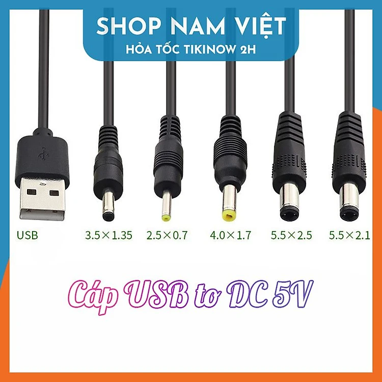 Dây Cáp Chuyển USB 5V to DC Jack 5.5 / 4.0 / 3.5 / 2.5mm Cho Quạt Sạc, Đèn Sạc, Đèn LED - Hàng Chính Hãng NAVIVU