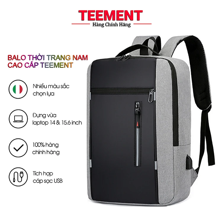 Balo Thời Trang Nam Cao Cấp Tement, Cá Tính, Phong Cách Độc Đáo, Tiện Lợi, Chất Liệu Vải Cao Cấp Chống Thấm, Chống Xước, Đựng Vừa Laptop 15,6 Inch - Hàng Chính Hãng