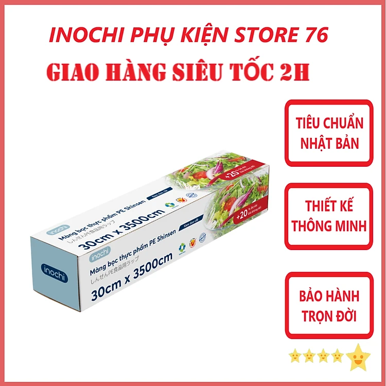 Màng Bọc Thực Phẩm , Đồ Ăn PE Shinsen Đạt Tiêu Chuẩn Tiêu Dùng Nhật Bản Đảm Bảo An Toàn Cho Người Sử Dụng - Chính Hãng inochi ( Tặng kèm khăn lau pakasa)
