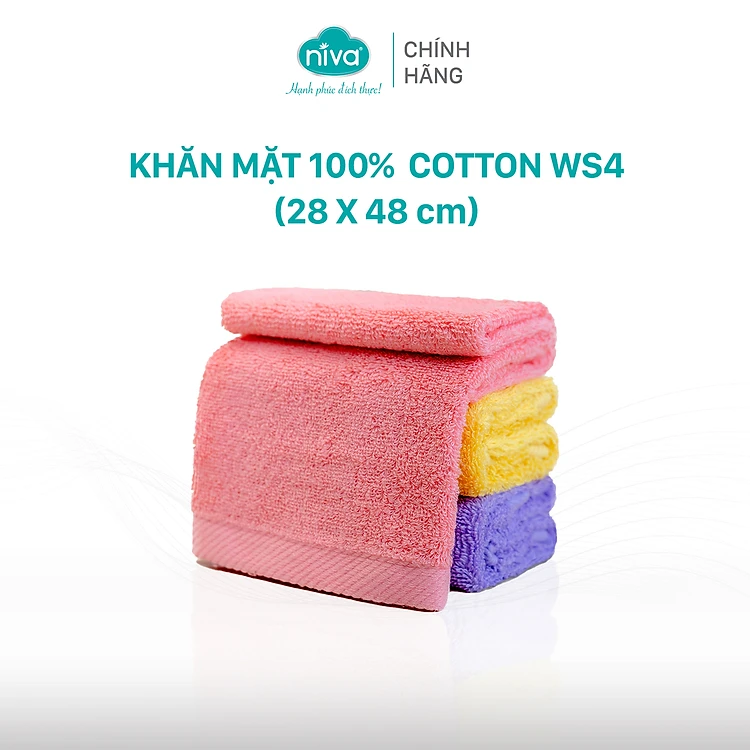 Khăn Mặt Cotton Tự Nhiên 100% Niva WS4 Mềm Mịn Thấm Hút Tốt, An Toàn Cho Da, Trơn Kích Thước 280x480 mm