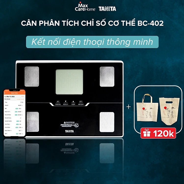 Cân điện tử kết nối điện thoại thông minh, phân tích 10 chỉ số cơ thể Tanita BC-402 Nhật Bản
