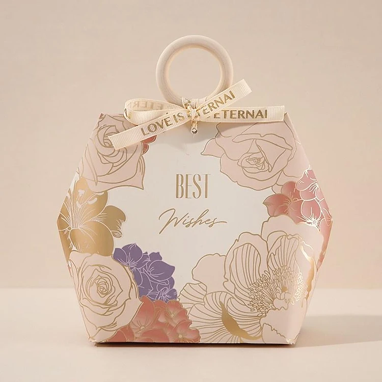(Kích thước 13*7*14.5CM) - Hộp giấy đựng quà tặng hình lục giác, họa tiết vintage có gắn quai cầm nhựa hoặc da, Q907
