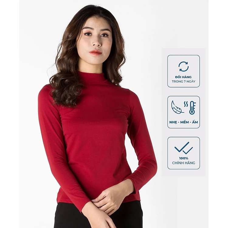 Áo thun giữ nhiệt nữ tay dài cổ cao 5 phân Vicci vải premium cotton mềm mịn ôm dáng
