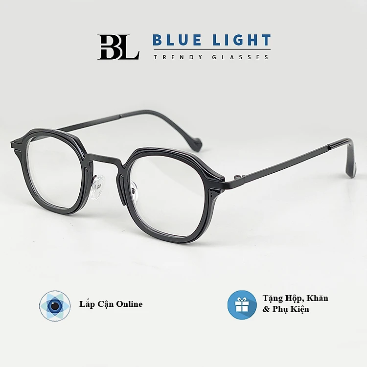 Gọng Kính Cận, Kính Giả Cận Nam Nữ Mắt Vuông Nhỏ Xíu, Độc Lạ, Full Đen, Trong Suốt - BLUE LIGHT