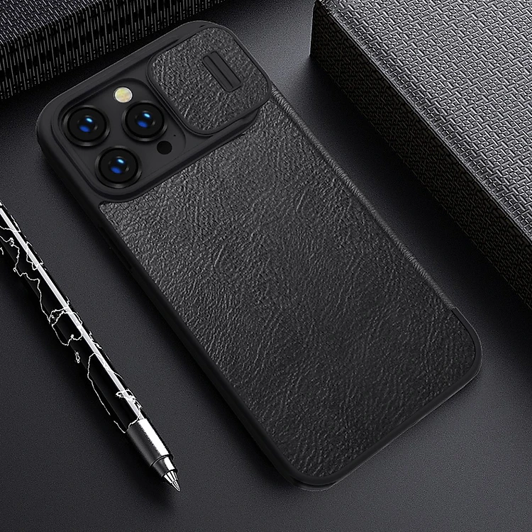 Bao da dành cho iPhone 14 Pro hàng chính hãng Nillkin QIN có nắp trượt bảo vệ camera - hàng nhập khẩu