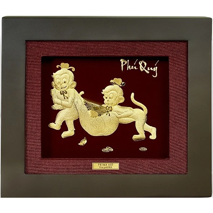 Tranh Vàng 24K PRIMA ART - Khỉ Vui Vẻ - Kích thước 18 x 20 cm - CGS-0411-14